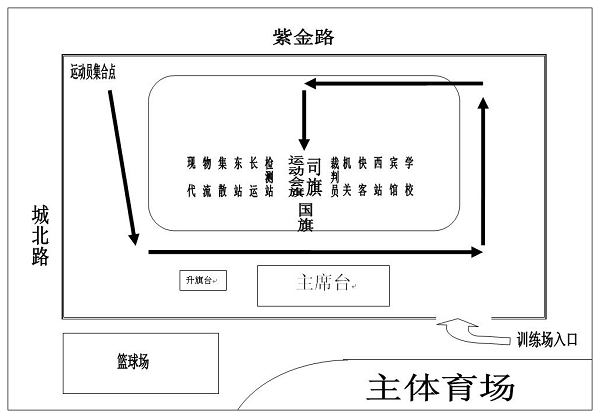 開幕式10月24日上午7:45準(zhǔn)時開始,要求參加開幕式的運動員7:30到集合點集合。