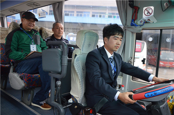 技能比武分安全駕駛常識比試和駕駛操作技能比武兩部分。安全駕駛常識比試以電腦當場作答方式進行,比試題目從理論考試題庫中隨機抽取。駕駛操作技能比武模擬迎接旅客上車、發(fā)車前安全承諾、途中安全駕駛和車輛回場送客等幾個環(huán)節(jié)進行。比武邀請市交警支隊警官、市運管局運安科領(lǐng)導(dǎo)及麗汽集團汽校管理人員擔(dān)任裁判。