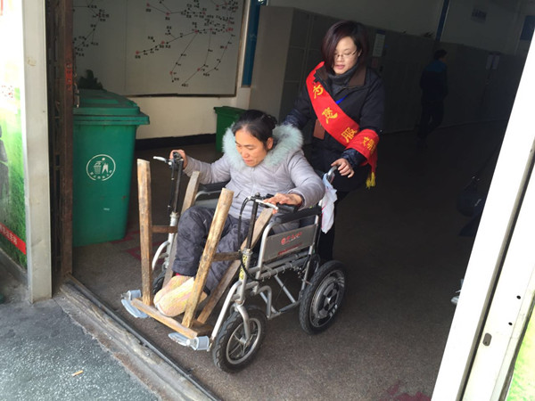 司機看見了,也過來搭把手,兩人一起把殘疾乘客子扶上了車。殘疾乘客坐到位置后,楊嬌妹熱心地幫她系好了安全帶。