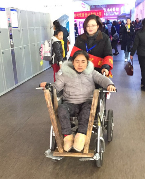 輪椅過不了安檢口,她貼心送上車