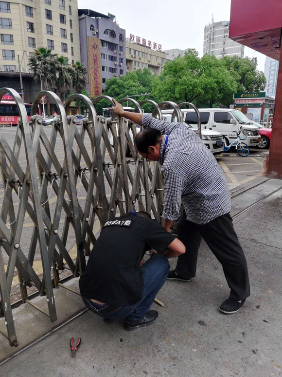 在車輛進(jìn)口處,“老戴”和副科長余林峰還對電子門進(jìn)行了檢查,發(fā)現(xiàn)因為設(shè)備陳舊,有幾個滾輪已經(jīng)脫落,于是叫來科室里的其他成員幫忙,人多力量大,大家一起動手,不一會兒就把電子門修好了。雖然修好門已經(jīng)是下班時間,但是他們并沒有急著回家,“老戴”和余林峰又檢查起了開關(guān)門遙控器,其他同志也分頭對站場各個角落的安全狀況進(jìn)行了檢查。