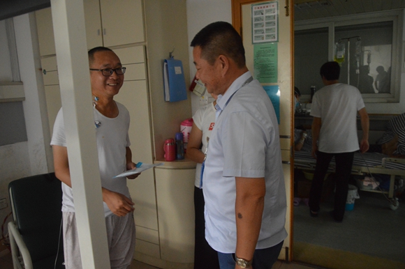 在醫院里,金健飛校長拉著梅申慶的手,詢問了他的病情和身體狀況,鼓勵他積極接受治療,早日康復回汽校繼續學車。并當場表示麗汽汽校將減免梅申慶補考的所有費用。