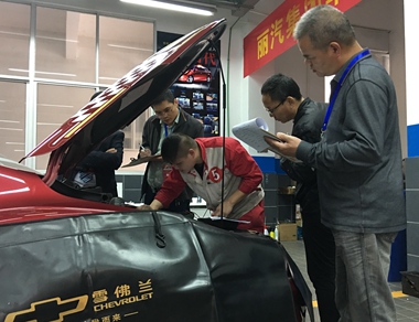 與此同時,在甌龍公司維修車間舉行的車輛故障維修診斷比武緊鑼密鼓的進行著。比賽指定車型為雪佛蘭科魯茲,考核內容設置4個故障點,涉及發動機控制系統的傳感器、執行器、控制線路與發動機機械系統。主要有前期準備、故障確認、故障代碼確認、故障范圍確定、部件測試及電路測量、故障部位確認、提出排故思路等環節。比賽時間從早上8點半一直持續到下午三點,選手們認真鉆研、勇于探索,真正體現了技術人員的專、精、尖。