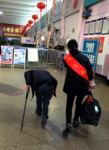 2月15日春運(yùn)還在繼續(xù),我們的溫情故事仍在上演。13:00,東站的服務(wù)臺(tái)還是有些忙碌,服務(wù)員鄭淑燕剛為一位旅客辦完行包寄存,突然聽(tīng)到一聲“這里能買票嗎?”鄭淑燕隨即環(huán)顧四周,卻看不到一個(gè)人,“哪里發(fā)出的聲音?”正當(dāng)鄭淑燕納悶時(shí),服務(wù)臺(tái)上出現(xiàn)了一只手拿一張百元鈔票的手,鄭淑燕隨即探頭去看,一個(gè)彎著背,身材矮小的中年男子出現(xiàn)在鄭淑燕面前。在問(wèn)清了該旅客要去的目的地后,鄭淑燕到售票窗幫他買好了車票,看到他還有一個(gè)包,鄭淑燕主動(dòng)提出幫他提包,送他上車。旅客客氣地說(shuō):“不用了,我慢慢走可以拎得動(dòng)的。”看著他吃力地樣子,鄭淑燕二話不說(shuō),從他手中接過(guò)包,跟在他旁邊慢慢地走,一直送他到檢票口。到了檢票口,鄭淑燕又交代檢票員檢票時(shí)幫助這名旅客先檢票上車。