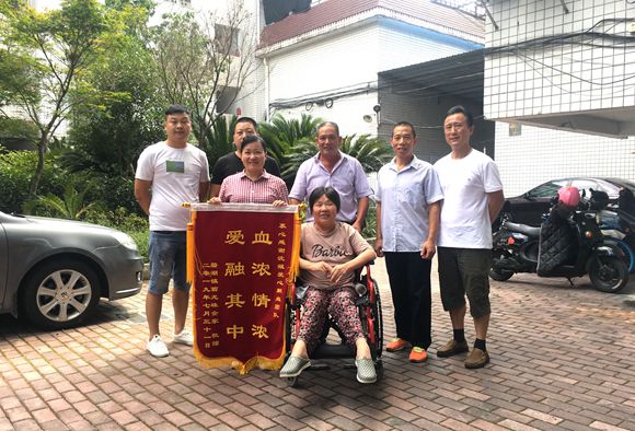 8月7日下午,翁龍珠一家找到沈姐和曾國偉等4名一起獻血的同志,送上了寫有“血濃情濃、愛融其中”八個大字的錦旗,向他們表示了當面感謝。得知消息趕來采訪的“老白談天”記者問曾國偉是什么讓他第一個決定去為一個素昧平生的人獻血時,曾國偉說道:“救人的事比較緊急,我也覺得自己獻的血能挽救別人的生命,是一件很開心的事。”