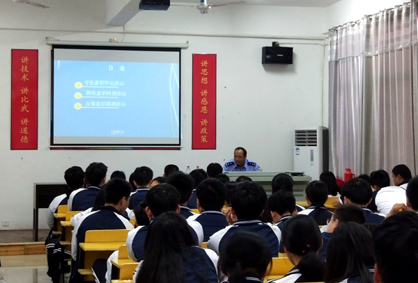 9月24日下午,學(xué)校特邀請蓮都區(qū)公安分局白云派出所民警曹起和對師生進(jìn)行以《遵紀(jì)守法?共筑和諧校園》為主題的法制宣傳講座。講座主要圍繞四大主題展開:守法意識(shí)牢記在心、防范意識(shí)時(shí)刻在心、反毒意識(shí)銘刻在心、反邪教意識(shí)警惕在心。