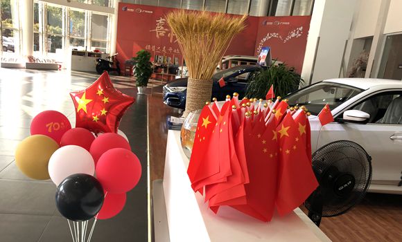 公司門口,大紅的橫幅寫出了恒翔人喜迎國慶的喜悅心情。銷售展廳里,新車上插滿了鮮艷的五星紅旗,銷售顧問們把寫有“愛我中國”的小紅旗貼到手上。售后接待處,也懸掛起了很多面迎風招展的紅旗。一面面五星紅旗,寄托了恒翔人滿腔的愛國赤誠。鮮艷的旗幟映襯著恒翔員工的張張笑臉,也寫出了他們身為中國人的自豪!