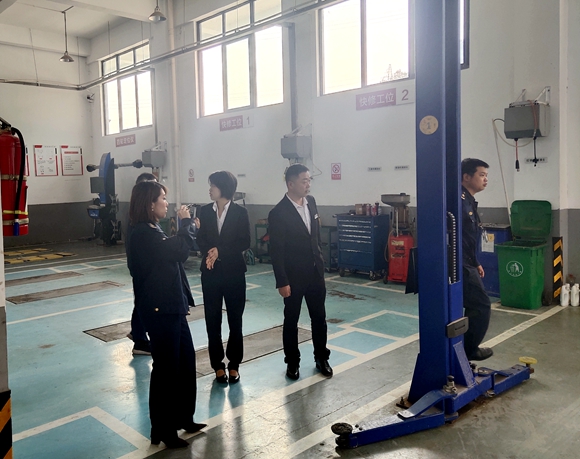 檢查小組一行首先深入車間現場查看安防設備設施配備情況及車間維修技師實際操作是否符合崗位操作標準規程。隨后檢查人員又圍繞企業經營資質條件,安全生產制度,日常安全管理臺賬,企業隱患排查整改,服務質量管理,維修工時定額和收費標準公布落實,及從業人員安全生產宣傳教育培訓等情況進行一一核查。