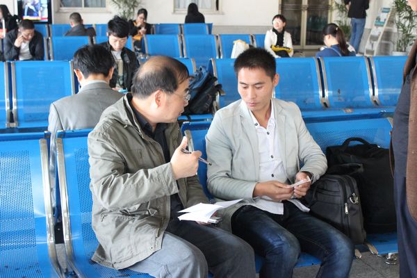 環境保護組專家在候車廳內現場隨訪旅客省衛生城市問卷調查