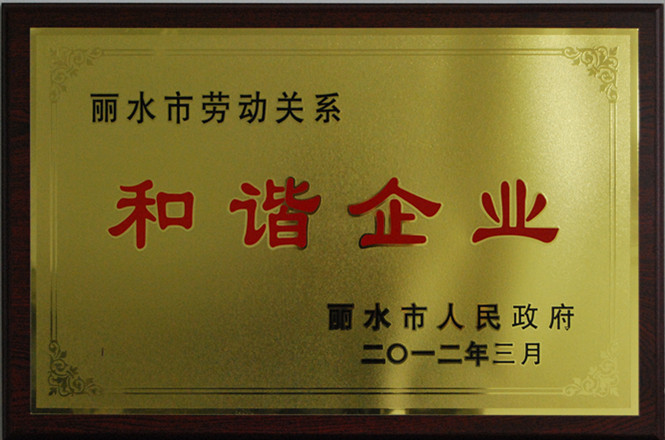 日前,集團(tuán)公司被麗水市人民政府授予勞動(dòng)關(guān)系和諧企業(yè)