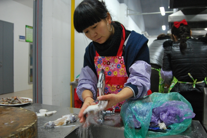 今年的女工廚藝大比拼一共吸引了集團公司各單位和離退委的12支隊伍參加,5人一組,5個女工在組里各司其職,分為洗菜、切菜、烹飪、輔助等崗位。按照規定,每組必須根據組委會提供的原材料,在規定的時間內,制作出14道菜。