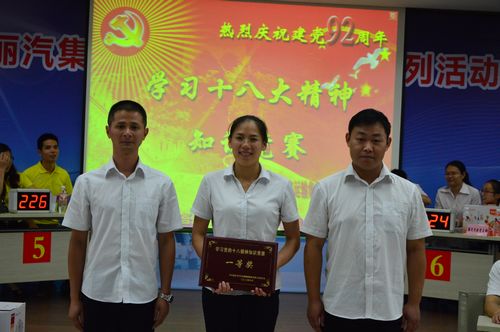 本次學(xué)習(xí)十八大精神知識競賽,共有來自集團(tuán)公司機(jī)關(guān)和下屬基層黨支部的10支代表隊(duì)參賽。經(jīng)過緊張激烈的角逐,客運(yùn)西站黨支部代表隊(duì)以238分獲得一等獎(jiǎng);機(jī)關(guān)黨支部代表隊(duì)和旅游集散中心黨支部代表隊(duì)獲得二等獎(jiǎng);南明物流黨支部代表隊(duì)、客運(yùn)東站黨支部代表隊(duì)和檢測站黨支部代表隊(duì)獲得三等獎(jiǎng),其他黨支部代表隊(duì)獲優(yōu)勝獎(jiǎng)。