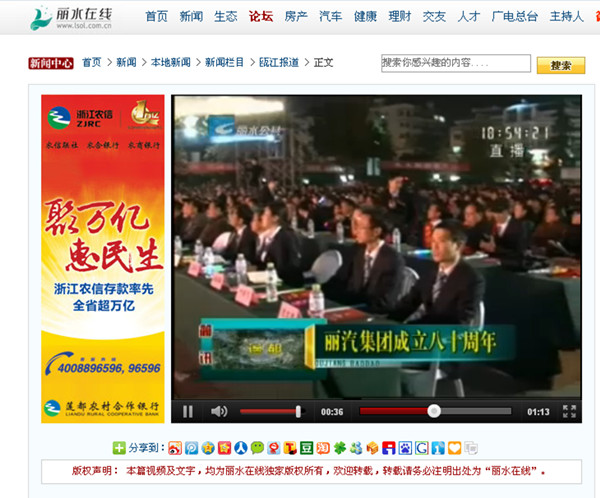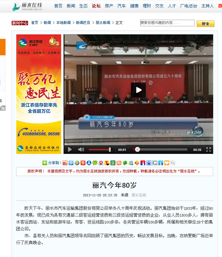 11月20日麗水電視臺新聞綜合頻道 麗水新聞《麗汽今年80歲》