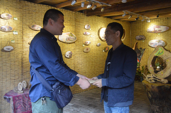章雙林告訴雷發(fā)榮,這個(gè)錢是他去年到北京人民大會(huì)堂接受“全國(guó)見義勇為英雄司機(jī)”頒獎(jiǎng)時(shí)得來的獎(jiǎng)金。北京回來的第二天,就從五萬元獎(jiǎng)金里拿出了三萬元,通過紅十字會(huì)捐給了里東災(zāi)區(qū)。今年初,也是通過老白談天電視節(jié)目,得知楓樹灣車禍?zhǔn)軅聝杭毙杈戎纸o他捐了5000元,現(xiàn)在還還剩下15000元,他想把這筆獎(jiǎng)金全部用來幫助身邊需要幫助的人。現(xiàn)在能夠幫助到身患重病仍不放下畫筆的雷發(fā)榮,他覺得很開心。雷發(fā)榮說,他生病以后,也得到了很多人的關(guān)心和幫助,他很感激,所以他畫的每一幅風(fēng)景畫里面,都有一輪冉冉升起的太陽,就像生活一樣,每天都充滿希望。
