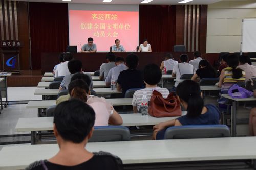 8月19日晚,客運(yùn)西站組織全體員工召開了“創(chuàng)建全國文明單位動員大會”。