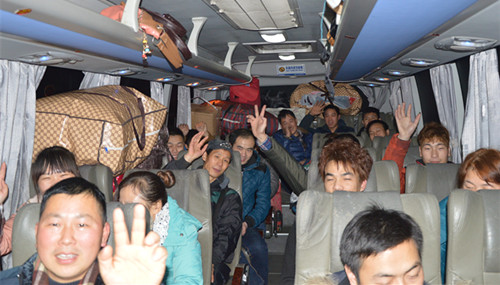 今天早上6點,“企業包車送民工回家過年”活動的首趟包車,在麗水富泰革基布有限公司發車。