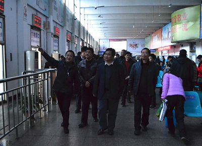 2月21日下午,麗水市市長黃志平、副市長葛學斌及市各有關單位領導在集團公司總經理薛和有、副總經理廖翊堯和東站經理梁巍的陪同下,視察了東站及周邊交通秩序和環境衛生情況。 黃市長一行先后來到東站站場、各檢票口、候車廳、危檢處、售票廳等區域,實地察看了站場服務設施,詳細了解了站內各項工作及創衛工作的開展情況,對東站各項工作的有序開展整體滿意。