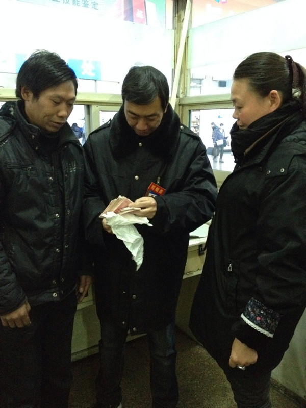 經了解,這個男子名叫鄧干武,貴州人,文盲,這16400元錢是他打工過一年的攢下的辛苦錢,也是一家老小過年錢。因為不識字,所以也沒存銀行,而是用餐巾紙包好藏在一個很不起眼的背包夾層里。失而復得的錢,讓鄧干武欣喜無比,而東站員工的行為,更溫暖了人心,溫暖著社會。