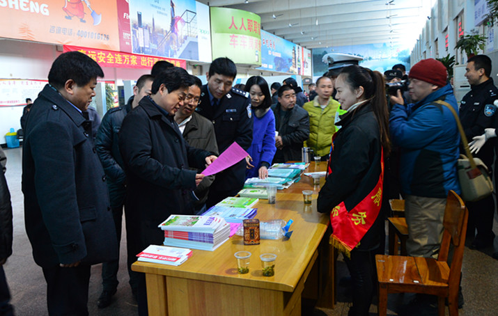 在客運(yùn)東站,葛學(xué)斌向工作人員詳細(xì)了解了春運(yùn)的各項(xiàng)準(zhǔn)備情況,查看為旅客準(zhǔn)備的春運(yùn)宣傳資料、免費(fèi)供應(yīng)的開水,以及一些便民咨詢服務(wù)等。