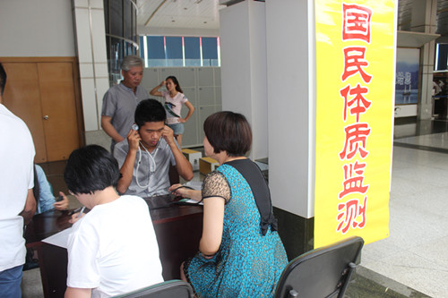 7月3日上午,市國民體質監測中心工作人員走進客運西站候車室,為車站的工作人員、司乘人員和過往的旅客開展國民體質監測活動,通過這樣的方式采集全市各類人群的體質監測數據,為引導群眾科學開展全民健身活動提供科學數據。