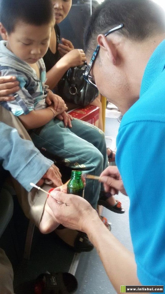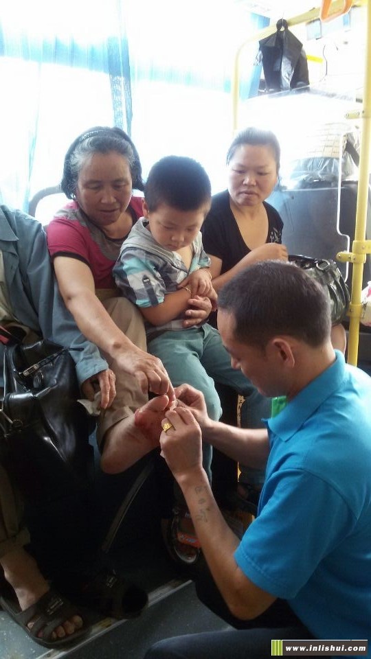 前天網友“鷹鷹”在論壇上發貼說:7月2日下午3點20分,我在中東路口站牌,乘301路公交車去鄉下老媽家。路上,由于旅客很多,一個大爺站在后門邊,不小心腳趾被門碰開一個口子,我們旅客不知道車上備有常用藥物,只知道給他餐巾紙以止血。公交車駕駛員得知有乘客傷了出血,馬上將車子停靠邊上,然后,從車上的急救箱里取出:碘酒、藥水棉花、創口貼等,因為老人是坐在座位上的,司機幾乎是跪在車廂地面,老人的腳也有些臟,但司機托著老人腳,細心的為大爺擦洗、消毒、包扎。他的行為,讓滿車的旅客齊贊他是一個好師傅。