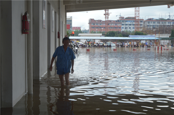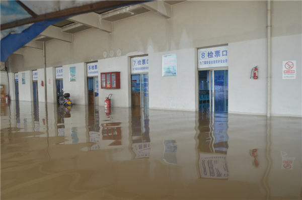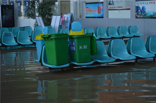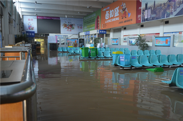 候車廳內,積水大概有四五十厘米