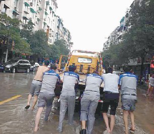 在這次抗洪救災(zāi)中,伊翔公司管理人員堅(jiān)守一線,上下一心,領(lǐng)導(dǎo)帶頭,不辭辛苦、不計(jì)個(gè)人得失,充分體現(xiàn)了一個(gè)團(tuán)結(jié)、積極、有凝聚力的團(tuán)隊(duì)面貌,他們用真情換來了員工的真心、換來了客戶的真心、換來了他們眾志成城抗洪救災(zāi)的感人場(chǎng)面。如術(shù)后尚未完全恢復(fù)就參與救援任務(wù)的拖車師傅范軍孫,如忍著全身奇癢仍然一次次跳入洪水中的車間主管王應(yīng)波等等。水災(zāi)無情人有情,眾志成城渡難關(guān)! 我們相信,在團(tuán)隊(duì)的力量下任何困難他們都會(huì)戰(zhàn)勝,因?yàn)橛姓媲樵冢杂姓嫘脑冢谜媲閾Q真心,真心伴全程,這無疑很好的詮釋了北京現(xiàn)代麗水伊翔公司的服務(wù)理念。