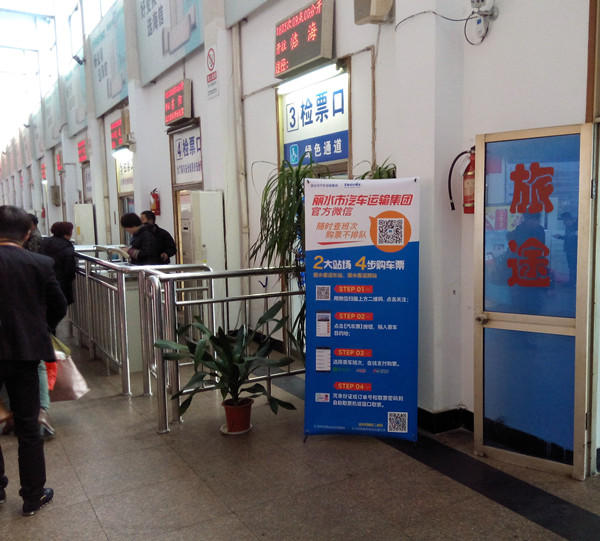 為方便旅客出行,強化服務質量,麗汽集團在開通網上售票、電話售票后,今天上午又推出服務新舉措--開通微信售票。廣大旅客只要掃描關注麗汽集團的微信號、點擊“汽車票”按鈕輸入乘車目的地、選在所乘的班車并在線支付,購票成功后旅客就可以憑身份證或訂單號和取票密碼到你購票時選擇的乘車站(東站、西站)的自助取票機或窗口打印出相應車票,即可憑票乘車。