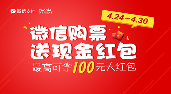 一大波五一福利!微信購票馬上獲1-100元現金紅包!真錢任性!