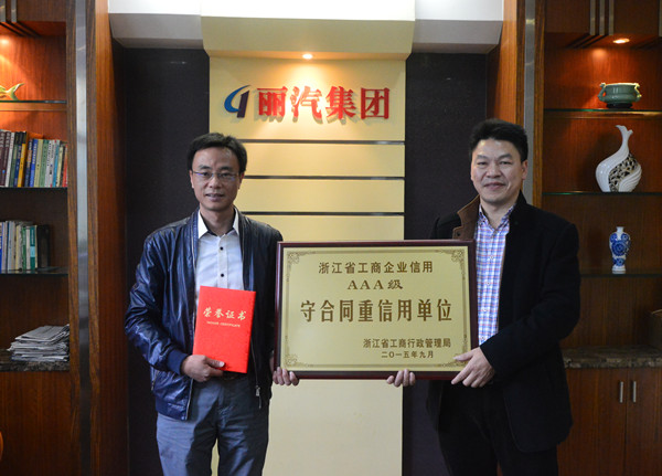 日前,麗汽集團被認定為浙江省工商企業信用3A級“守合同重信用”單位,有效期三年。11月13日上午,麗水市市場監管局直屬分局監管科科長吳乾水專程為公司送來“浙江省工商企業信用AAA級守合同重信用單位”的匾牌及榮譽證書,并對麗汽集團守合同重信用工作表示了充分的肯定。