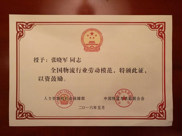 張曉軍獲全國物流行業勞動模范