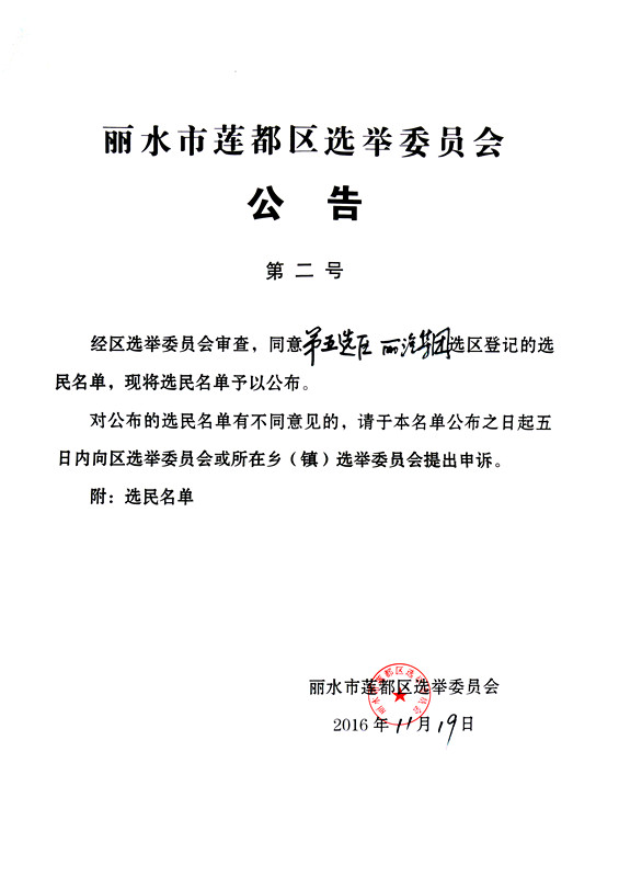 麗水市蓮都區(qū)選舉委員會(huì)公告(第三號(hào))