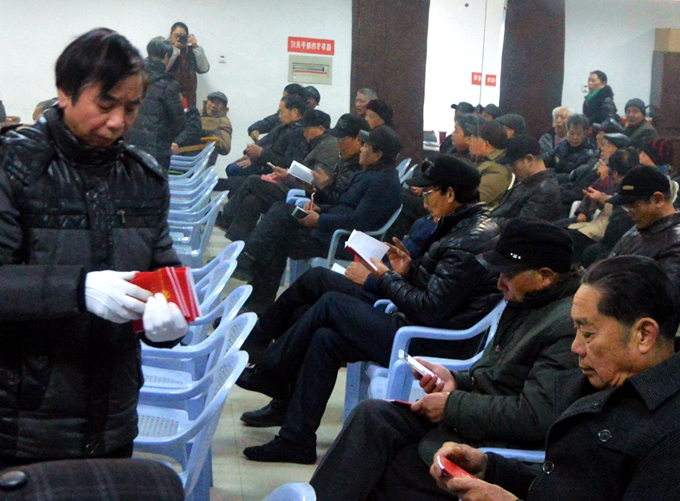 宣貫會前,工作人員還向參會的黨員同志發放了新版《黨章》,老同志們迫不及待地認真翻閱了新《黨章》。