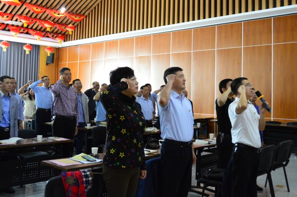 “我志愿加入中國共產黨,擁護黨的綱領,遵守黨的章程,履行黨員義務,執行黨的決定,嚴守黨的紀律,保守黨的秘密,對黨忠誠,積極工作,為共產主義奮斗終身,隨時準備為黨和人民犧牲一切,永不叛黨”,黨委書記黃偉君帶領與會人員重溫入黨誓詞。