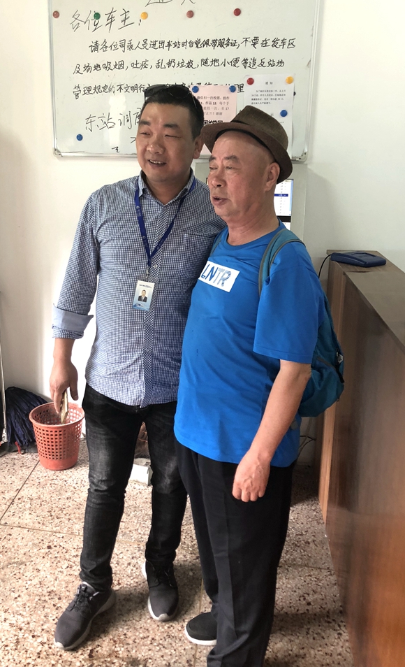 十分鐘后,失主趕到東站調(diào)度室時,正好碰到了準(zhǔn)備發(fā)車的錢偉君師傅,失主王先生一臉感激,連聲向錢師傅道謝并且從錢包里抽出了現(xiàn)金表示要感謝錢師傅,被錢師傅婉言謝絕了。最后王先生堅持要和錢師傅合影留念,并熱心地邀請錢師傅抽空一定去北京玩。因為王先生要趕下午4時的高鐵,錢偉君師傅的班車也馬上要出發(fā),他們彼此互留了微信后,就握手道別了。